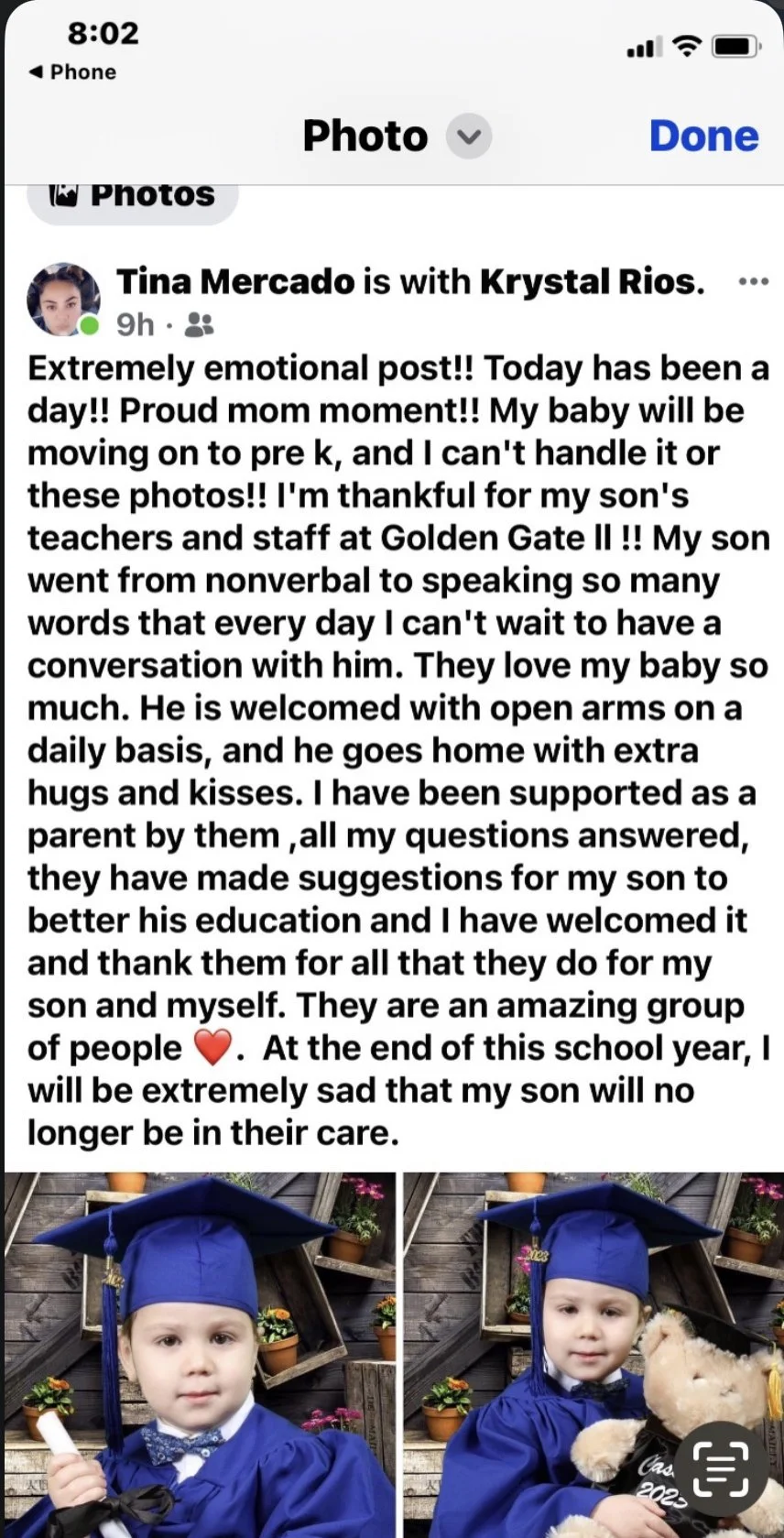 ⭐️⭐️⭐️⭐️⭐️We received a post from a parent of one of our CDC II students.
